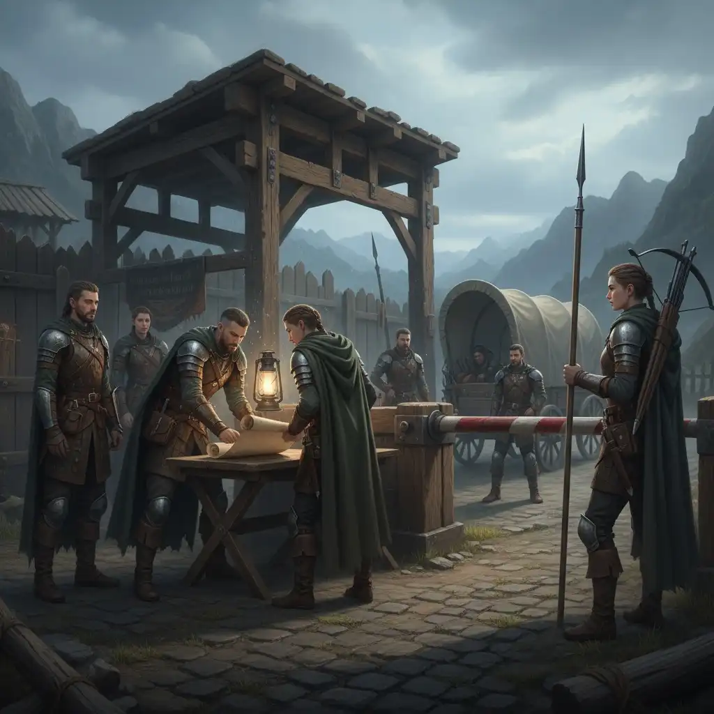 • Gatehouse Post: Checkpoint for tolls, manifests, and muster calls led by Captain Brindle.