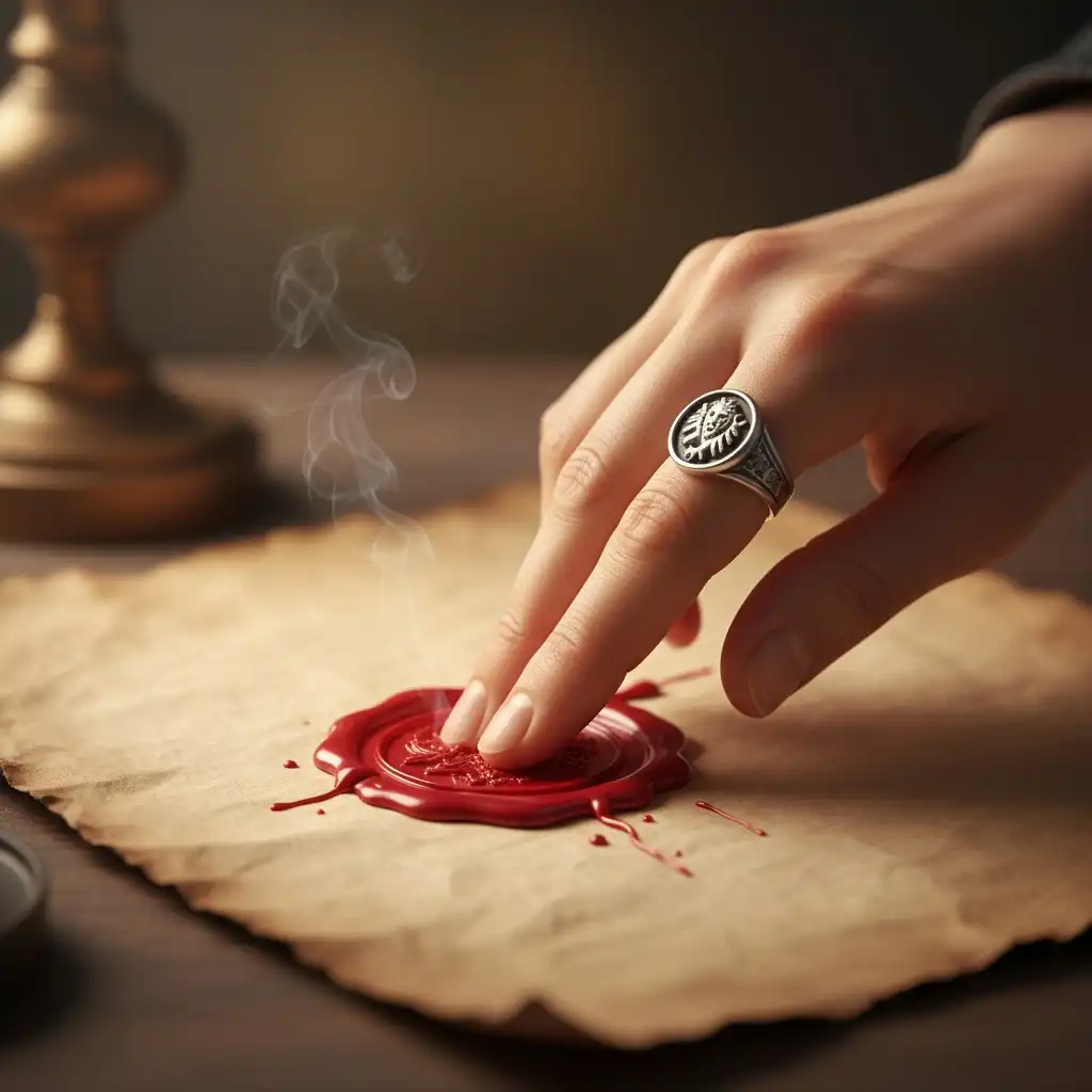 - Seal Mark: Applies a unique wax impression; forgeries require a contested check against the ring’s cipher quality.