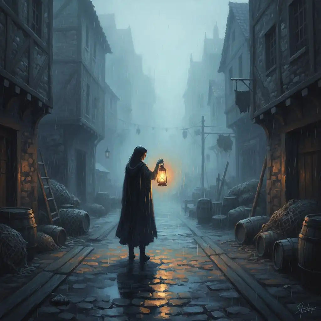 - Lantern-dock alleys and warehouse rows of Vesper Quay