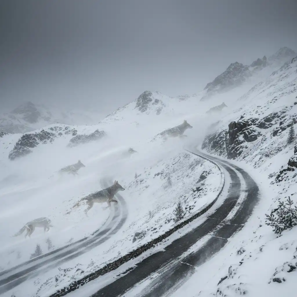- Lean, long-limbed canids with translucent hide and wind-tattered manes.
